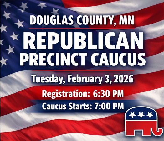 Come join us at the Alexandria Area High School for our Precinct Caucus. Registration starts at 6:30 PM, and the meeting will start at 7 PM.